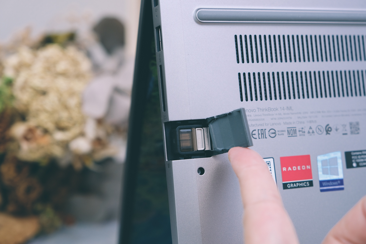 很多女生都會擔心隱私的問題,阿湯也很常看到在鏡頭蓋上貼上紙膠帶的做法,但是買 ThinkBook 14 不用擔心這個,鏡頭上本身就具備一個 ThinkShutter 鏡頭蓋,不使用時可以真正的「蓋」起來,駭客再怎麼厲害也沒辦法遠端打開你的蓋子,更不用貼上影響筆電質感的膠帶。