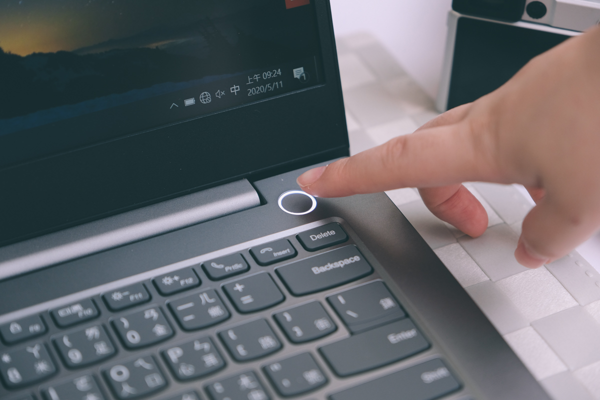 右上角的電源鍵同時也是指紋辨識器,一進入系統只要手指一放就可以放上登入。