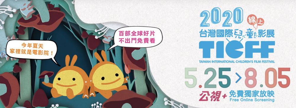 「台灣國際兒童影展」為兩年一度專為 12 歲以下孩童舉辦的大型影展活動,同時也是亞洲歷史最悠久與規模最大的兒童主題影展,「2020 台灣國際兒童影展 ─ 線上影展」5 月 25 日起至 8 月 5 日於「公視+」免費登場,比照實體影展架構,將影片以單元方式呈現。由於部分影片有觀影期限,線上影展將分為兩梯次上架 (5/25-6/14;7/15-8/5),不僅維持新鮮感,更讓大小朋友有充分時間欣賞所有影片。
