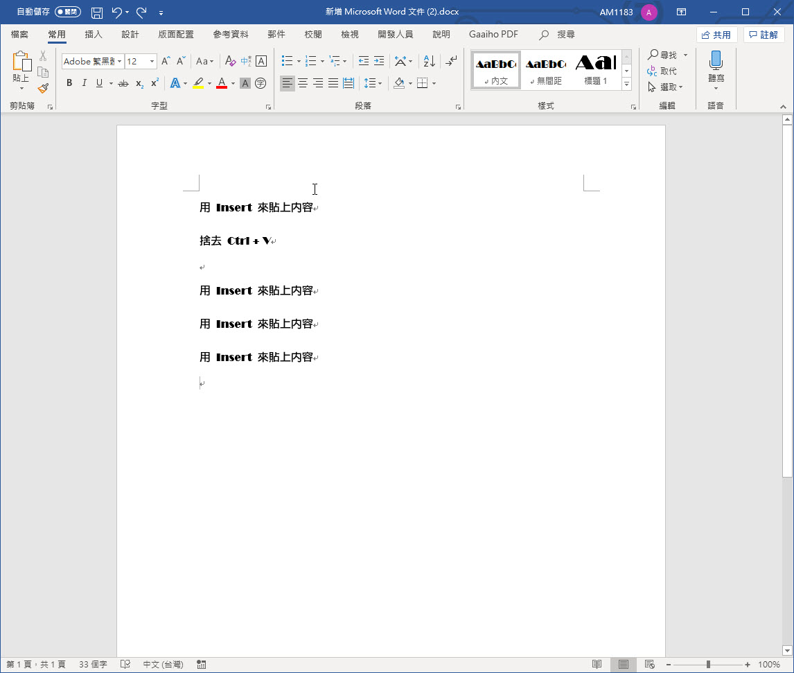 Word 教學 - 如何用 Insert 鍵取代「Ctrl + V」的貼上功能
