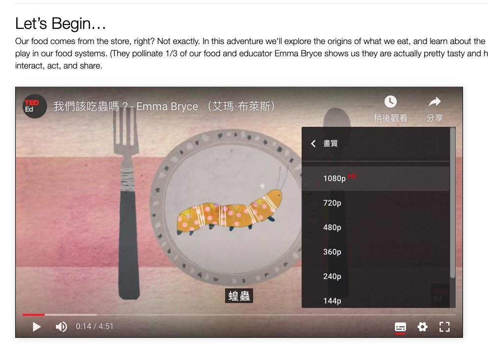 網站:https://ed.ted.com/earth-school前往 TED 的教育網站就可以直接觀看,不需要註冊,也不用費用,課程一共分為 6 週,每週是五堂課程,所以你可以分為一個半月,除了週末以外的時間和小朋友每天看一部來學習,每部時間都不超過十分鐘,但都相當的有意思。