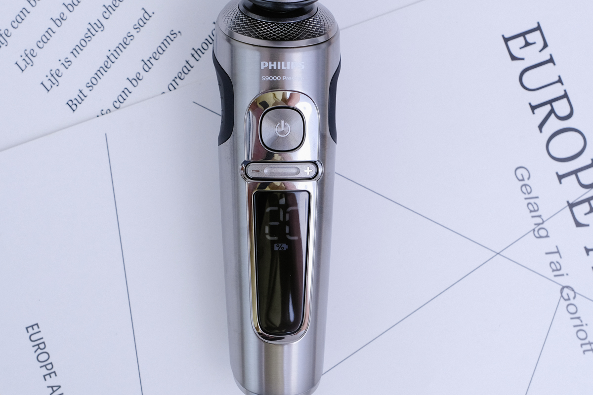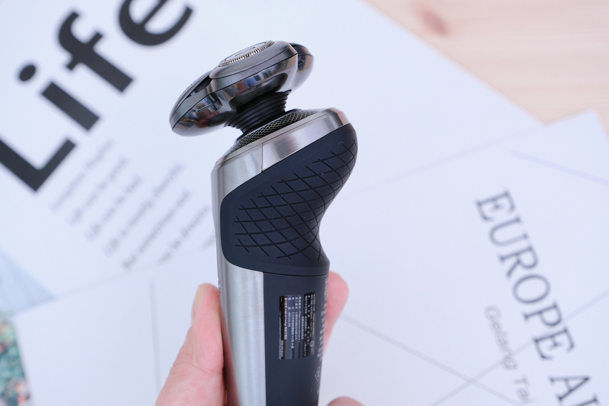 電鬍刀普遍的設計帶給我的印像都是黑黑的、塑膠感,但這把飛利浦電鬍刀真的不愧是機皇等級,採用不鏽鋼金屬材質,再加上這深鐵灰的色感,你要說他是電鬍刀界的跑車也不為過。