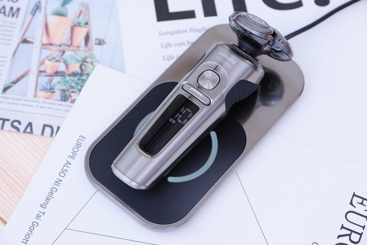 而飛利浦電鬍刀 SP9860 直接支援 QI 無線充電,平常使用完畢只要放到充電板上就可以走了,隨時拿起來不被線材束縛,電力更是百分百等著你使用。