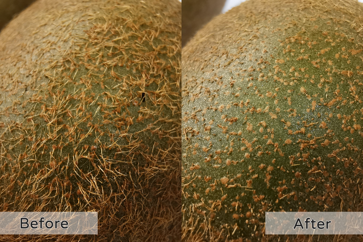 直接來看結果,阿湯用微距鏡分別拍下了同一個部位刮除細毛的前後,左邊是原本奇異果的表面,放大後是不是比你想像的濃密許多,但相信很多人的鬍鬚放大後差不多也就這樣,然後右邊則是阿湯用飛利浦這把機皇挑戰的結果,沒幾下就刮的乾乾淨淨,知道這瞬切奈米刀鋒有多強大了吧,而且不知道為什麼把奇異果刮乾淨有種療癒感啊,拍完後我還莫名的把整顆奇異果都刮乾淨了....
