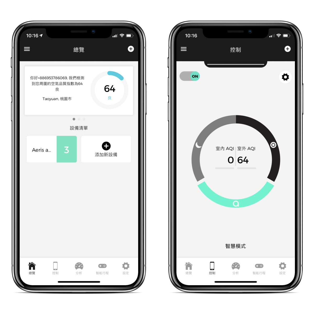 配對很簡單,大約只要 2~3 分鐘就搞定,設定好連線,就可以從 APP 裡操控運作模式並且了解室內空氣品質,在預設的情況會是採用智慧模式,也就是會依據空氣品質自動切換風速運轉,你可以完全不用管事的放著。