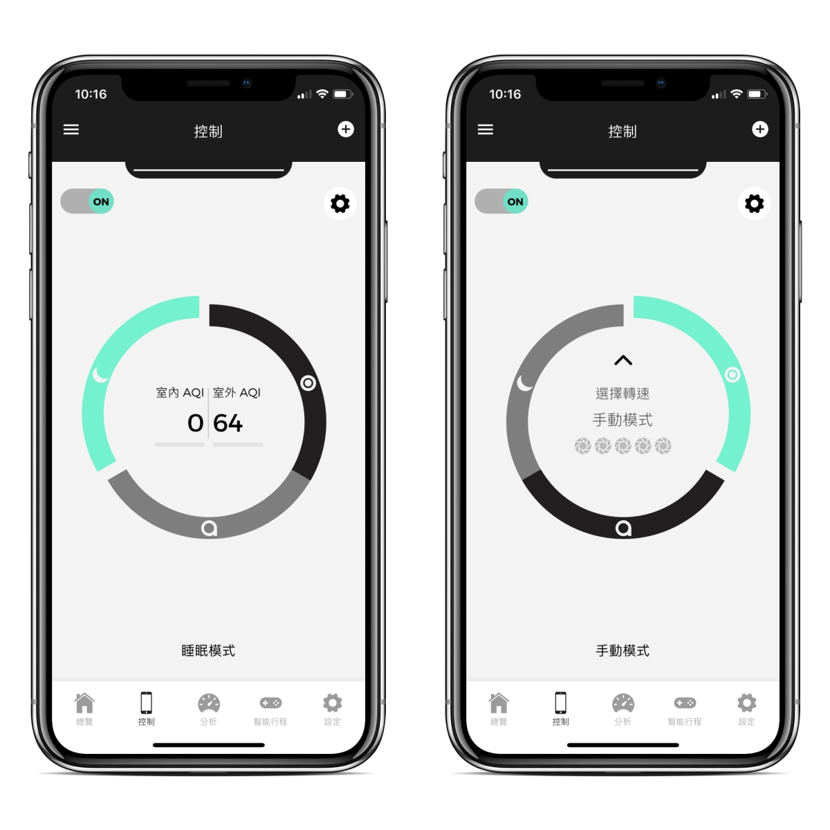 另外有確保超安靜的睡眠模式以及手動模式,不過像我是 24 小時不關機的人,手動模式我幾乎不會用到,加上現在的空氣偵測感應其實都蠻靈敏的,有什麼風吹草動幾乎都是秒反應運作起來。