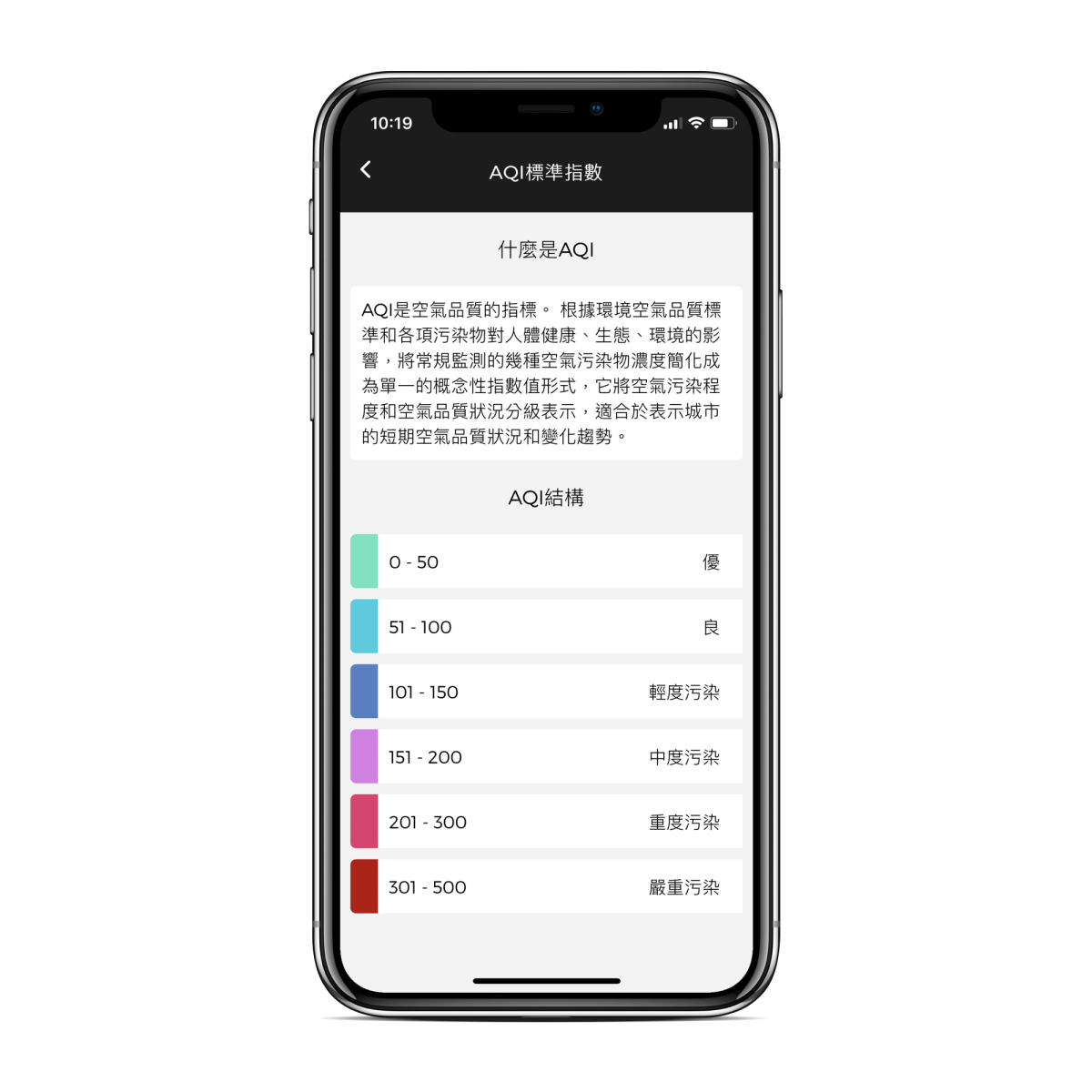 順帶一提,大部份的機器上是以 PM2.5 的數值為主,或者是 PM2.5 跟 TVOC 分開之類的,aair lite 上顯示的空氣品質數值是代表 AQI,可以解釋成空氣品質的綜合指數,基本上只要低於 50 都是好的,像我家都在 5 以內,就知道我有多注重空氣品質了。