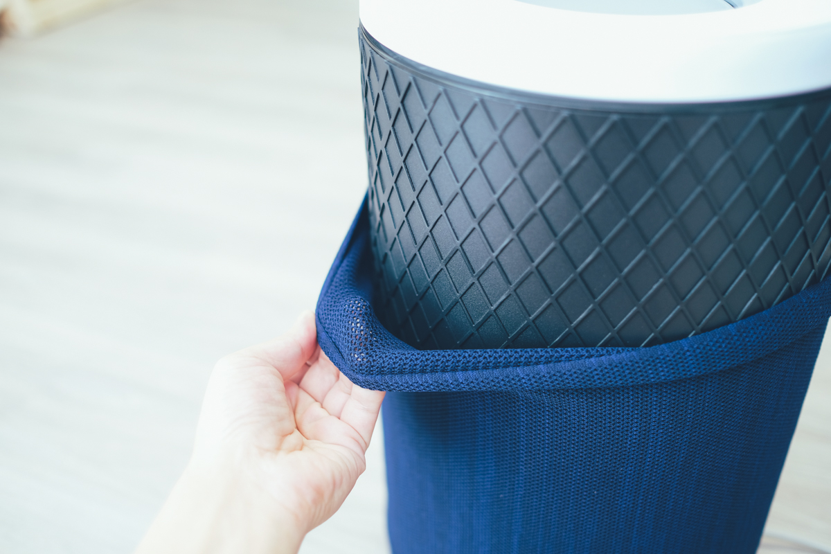 雨雲灰及石英粉,不論哪一個都很美很有質感,當然,也可以依據每天的心情隨時更換,拆換時間我估計只要 10 秒吧。而機身外套上本身就有鋅離子抗菌塗層,能夠隨著進氣捕獲並消細菌及黴菌,重點是可以水洗,用洗衣精也沒有問題,進而重複使用。