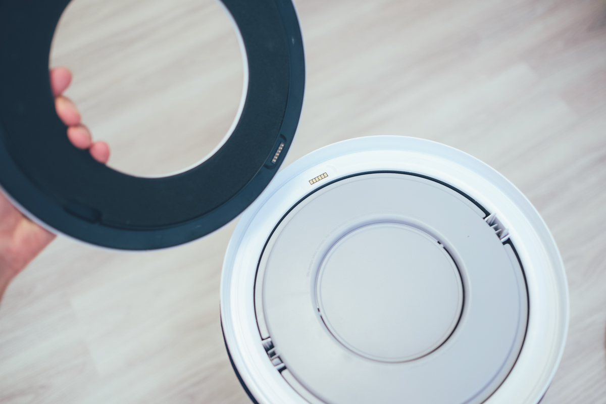 上方的拆卸設計我覺得蠻不錯的,控制面板是用磁吸的方式跟下方接觸,直接拿起就可以拆卸核心濾網,相當方便。