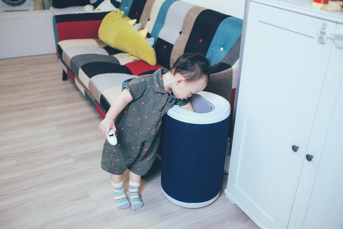 機身也有抗菌非常的重要就像這樣,湯包從托嬰中心一回家就站在這台 aair lite 前方把玩了半小時,整個晚上也動不動的就走回來研究摸摸他,你說機身要是沒有抗菌的話,像一般空淨機一直把髒空氣吸過來,其實機身上也充滿細菌啊!!這台我終於可以放心的放在地上了。