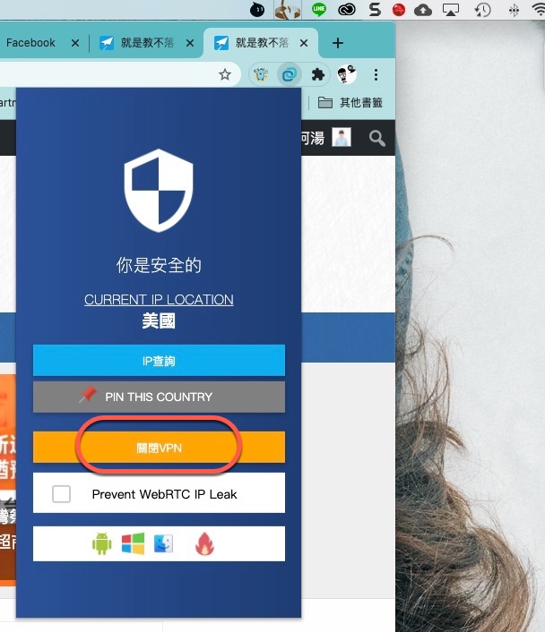 這樣就完成連結了,不使用或要切換其他國家時,只要按關閉 VPN 就可以了。