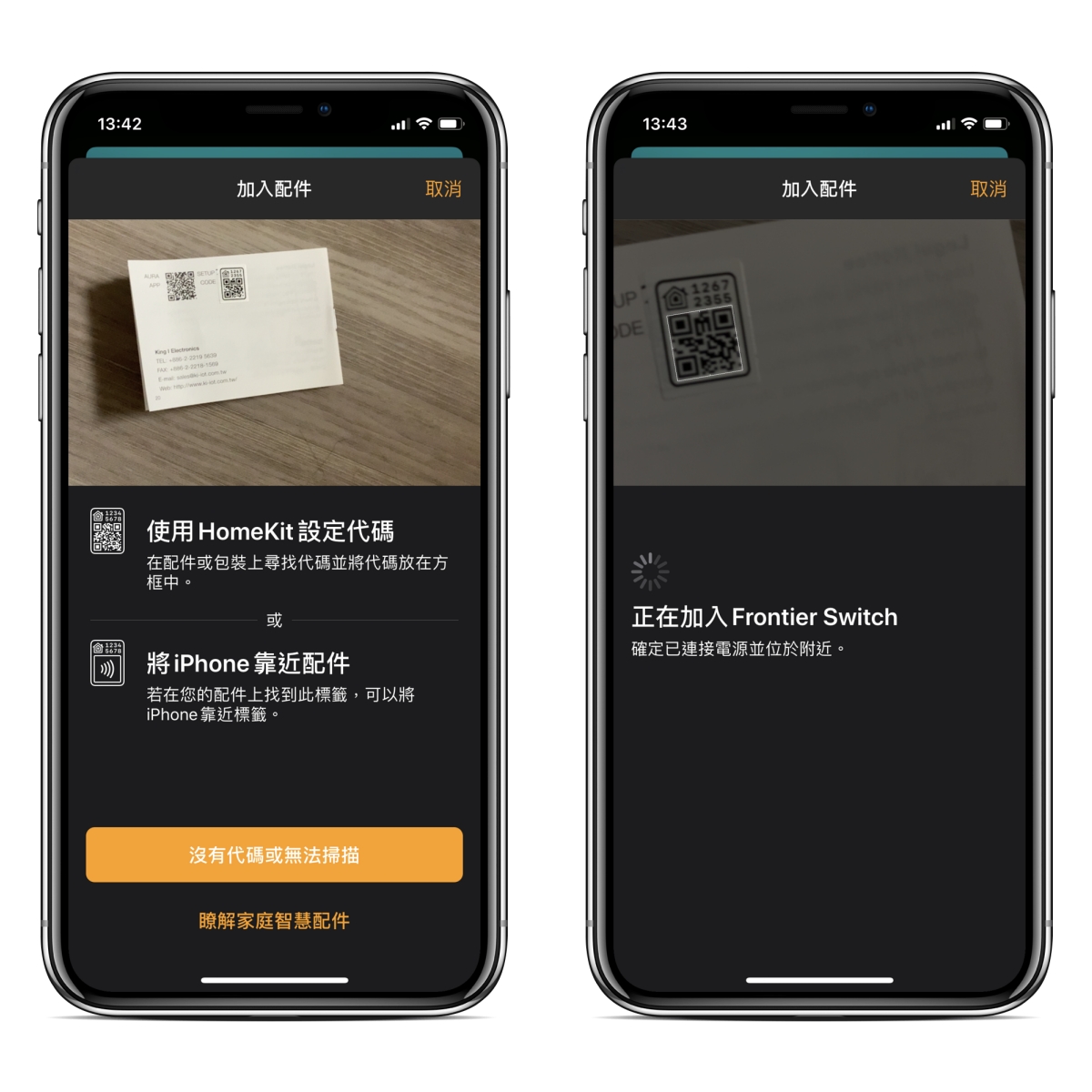直接支援 Homekit 就是傻瓜設定,拿起 iPhone 用家庭 APP 裡的加入配件直接掃他提供的 QR(在手冊背面),就可以完成加入。