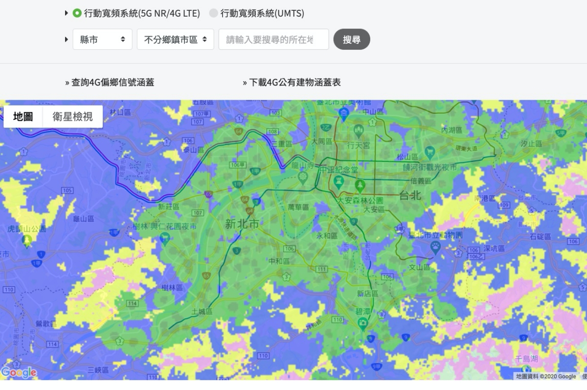 中華電信 5G 訊號查詢:https://www.emome.net/internet_coverage