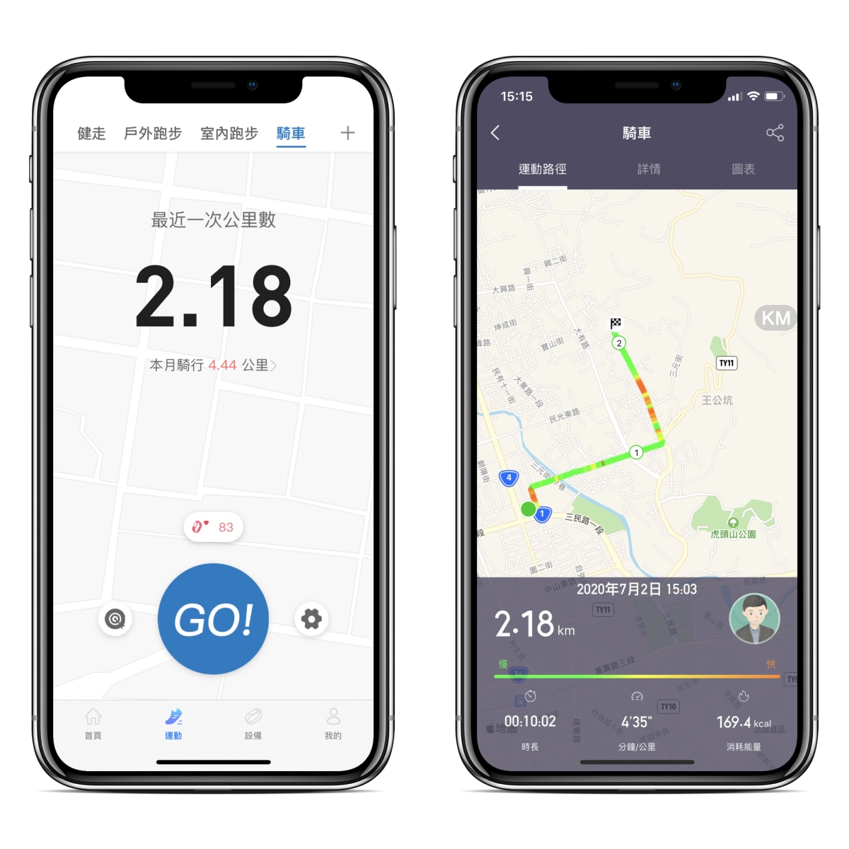 如果需要記錄軌跡跟詳細記錄,可以從手機 APP 上來啟用運動,就可以獲得更詳細的記錄內容,像是距離、路徑、配速等。