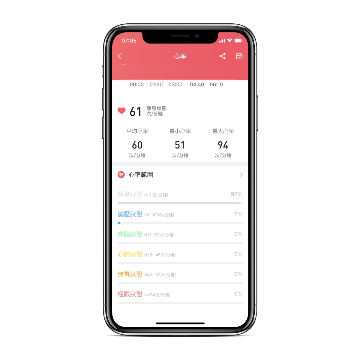 心率的部份我覺得是運動的重點資訊之一,當你在運動時建議可以隨時查看一下自己的心率範圍,除了可以讓自己的運動是更有效之外,也能讓自己運動的更舒適一些,最佳區間當然還是落在 130~160 之間,會是運動最舒適的範圍,也是最有效的區間。