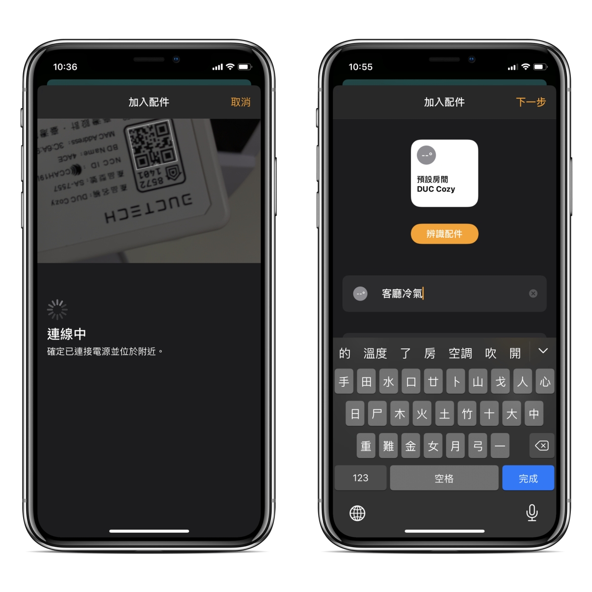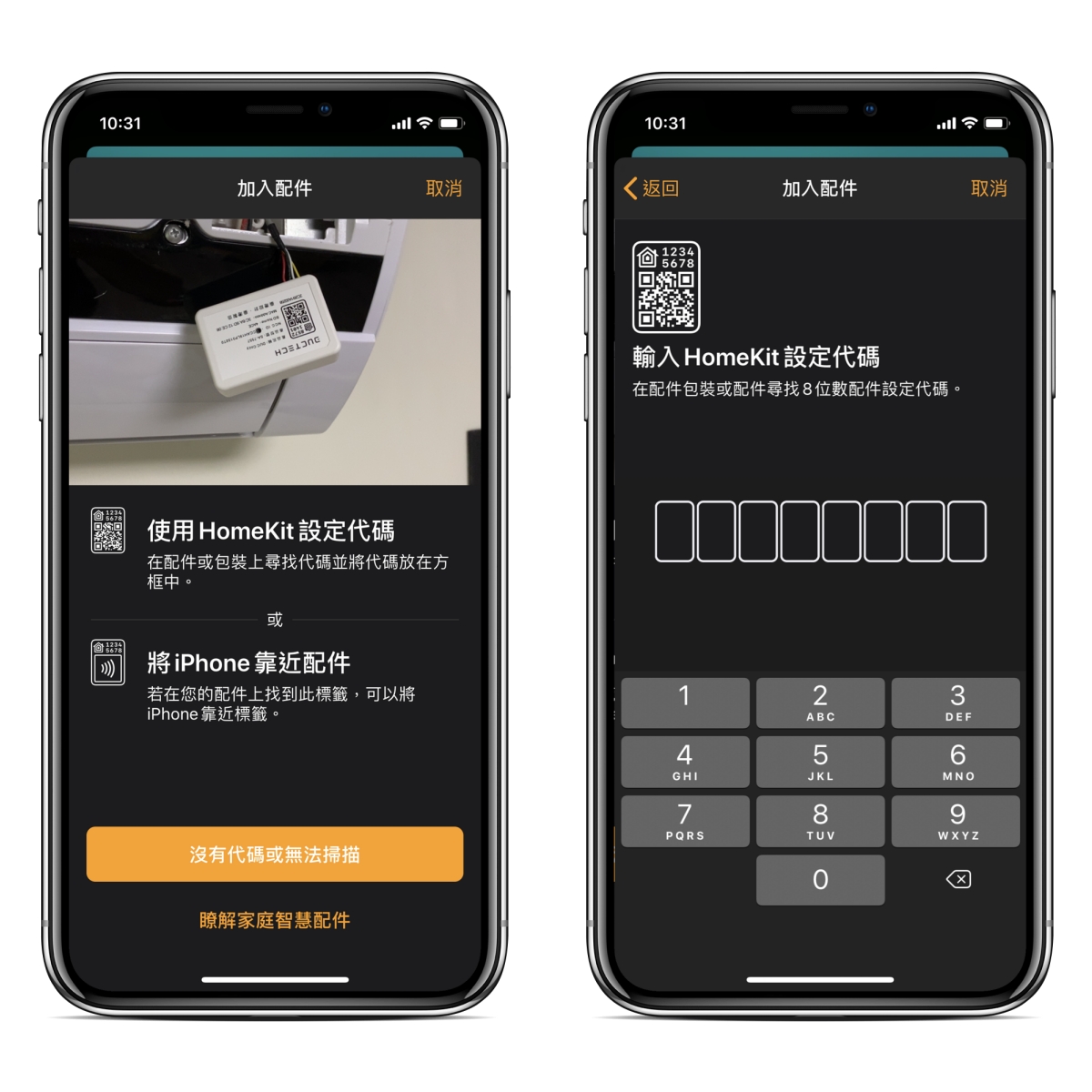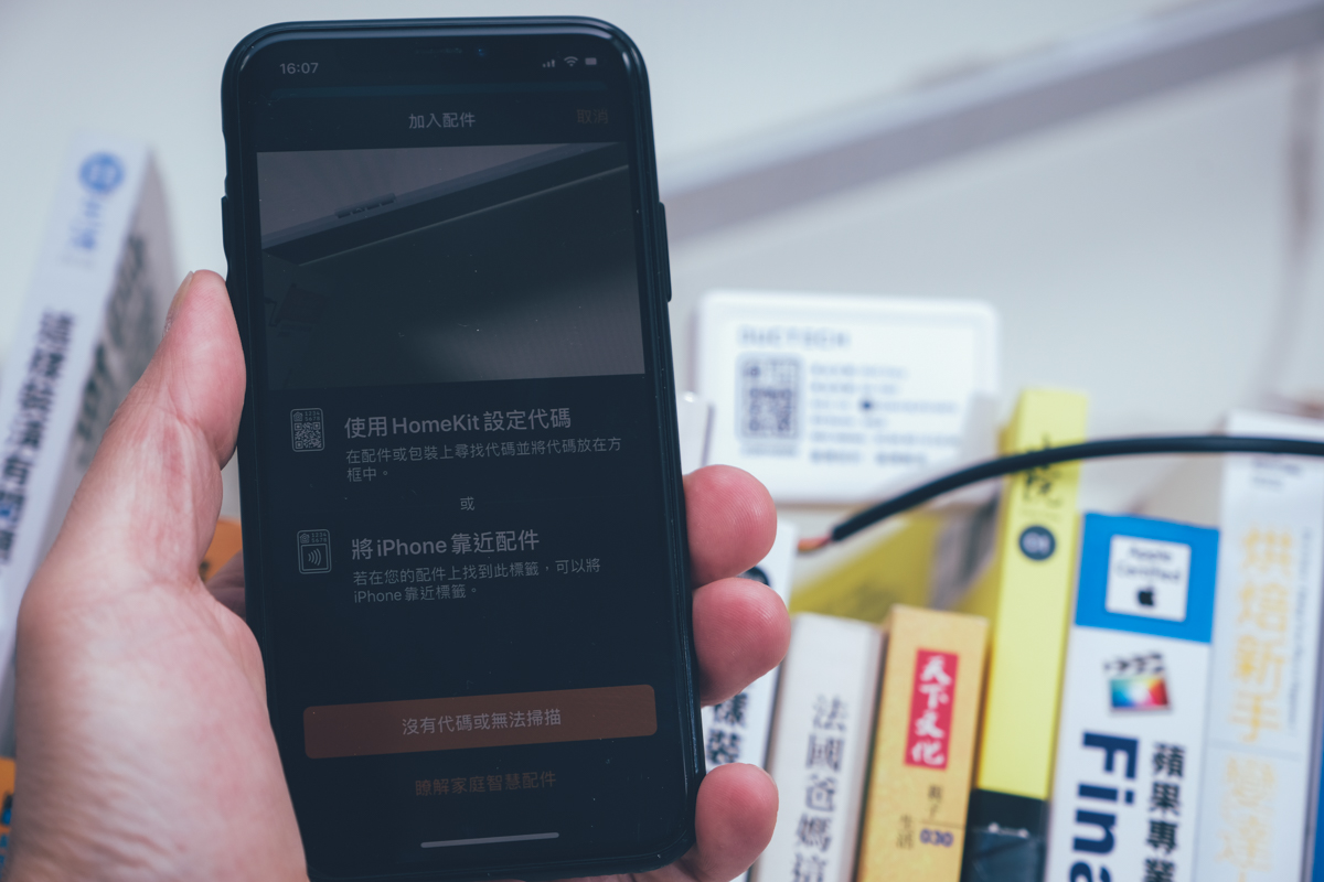 只要有玩過 homekit 智慧設備的話,這步驟應該一點都不陌生,只要用 QR 掃描或者自行手動輸入設定代碼也可以。