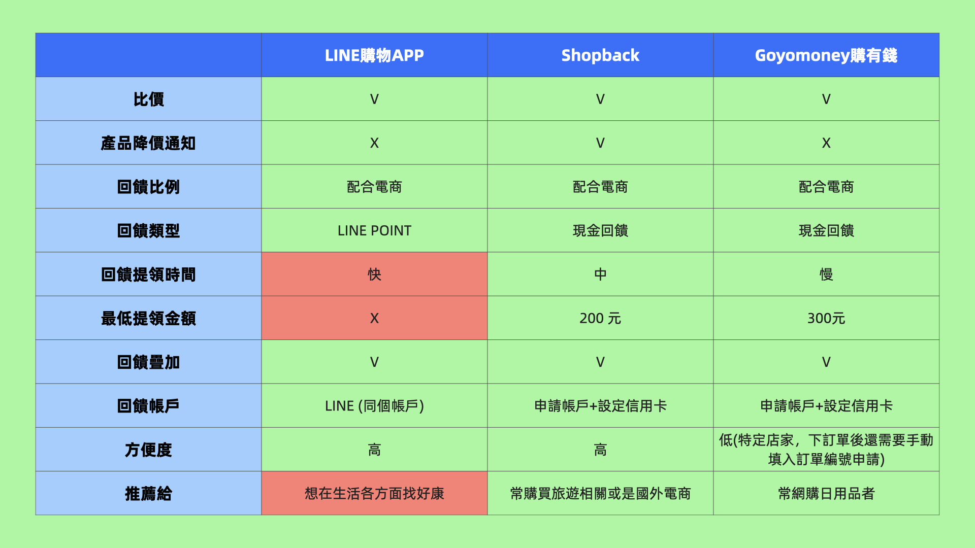 - 擁有比價功能、回饋速度快、單一帳戶直接回饋