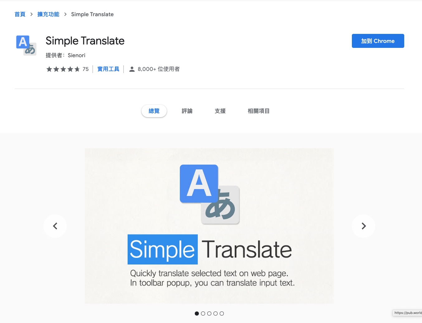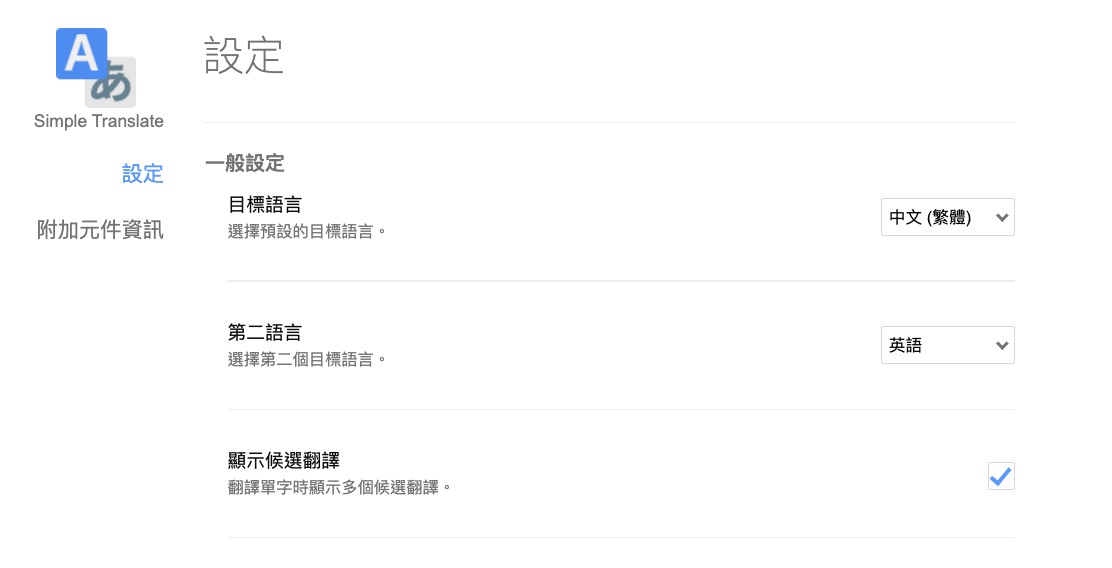 瀏覽器外掛 Simple Translate