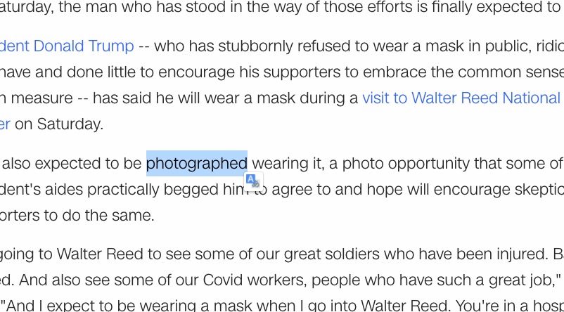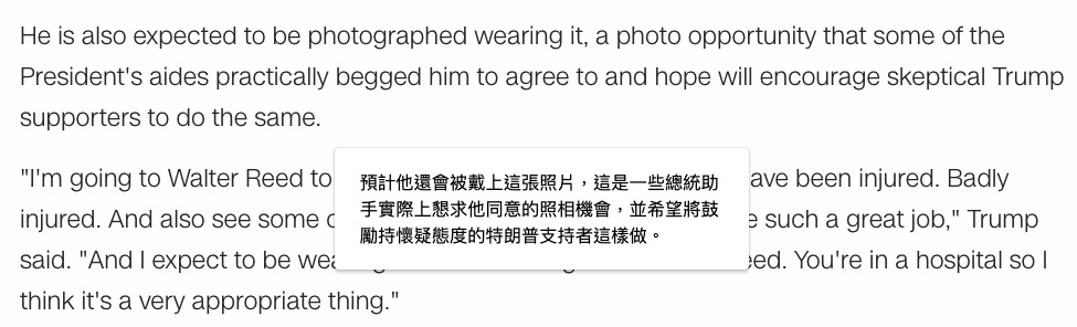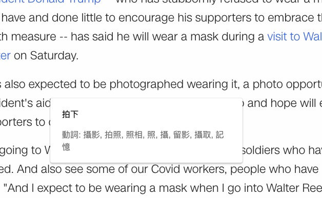重點是使用方式,就像這樣,在網頁上選擇單字後,他的右下角就會出現一個小圖示,然後點擊下去就會看到翻譯。