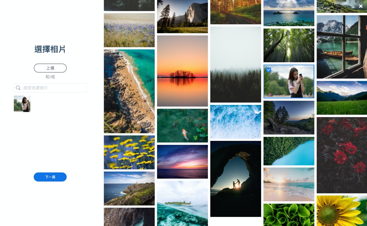 接下來可以自行上傳圖片,或是透過他現成的一些照片來製作。