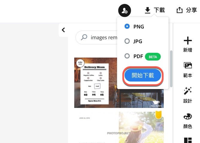 最後製作完成後,在下載直接選格式輸出就可以囉。