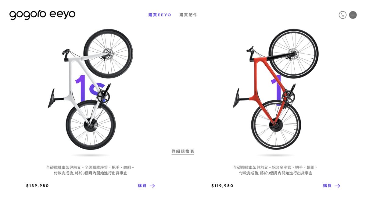 Eeyo 1 和 Eeyo 1s 採用相同 Smartwheel 動力和全碳纖維輕量化車架與前叉,但兩者有著不同的顏色及座管、車把手及輪圈,售價也分別為 Eeyo 1 $119,980、Eeyo 1s $139,980。