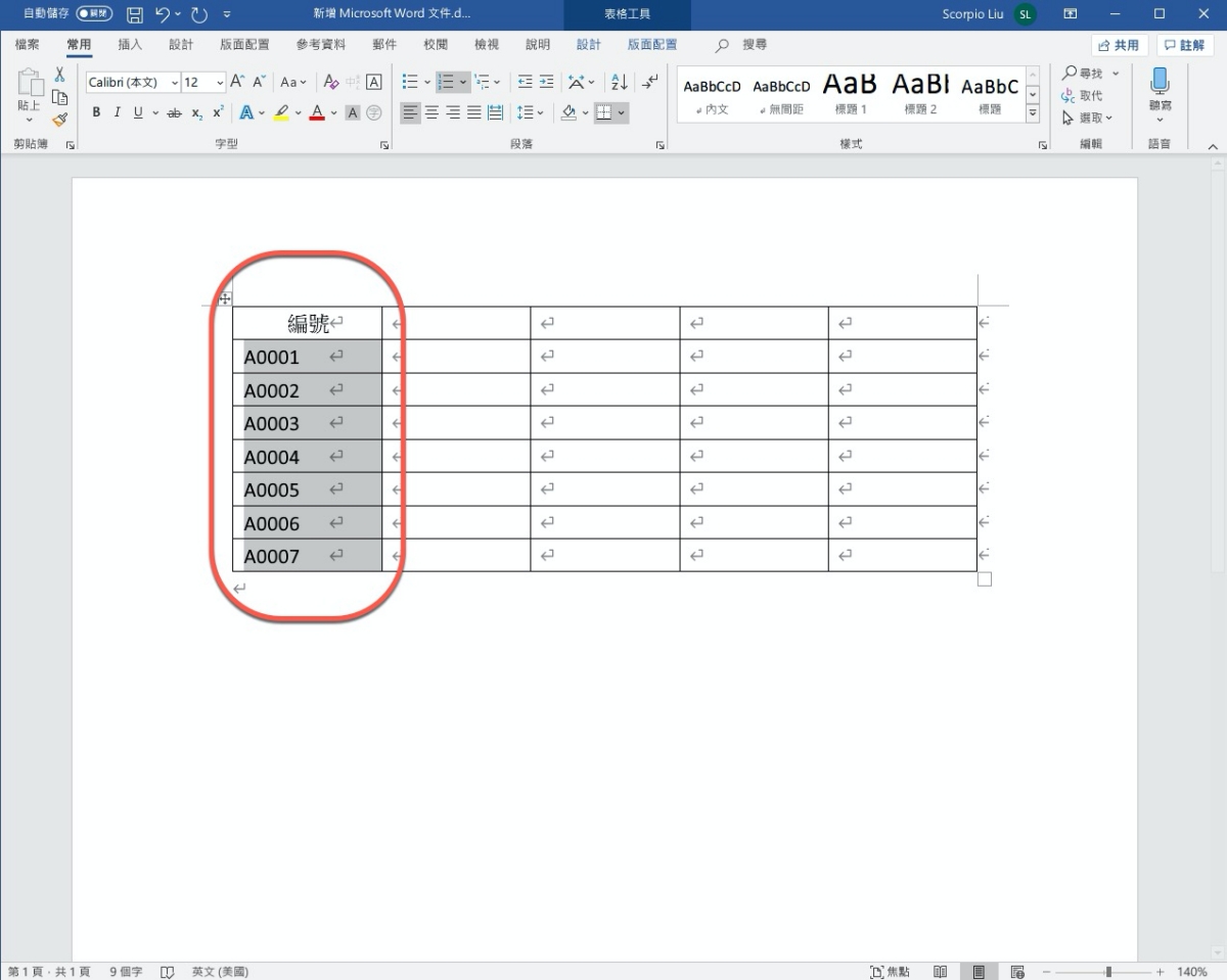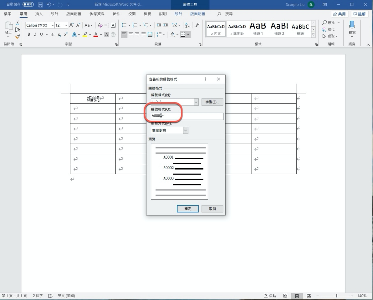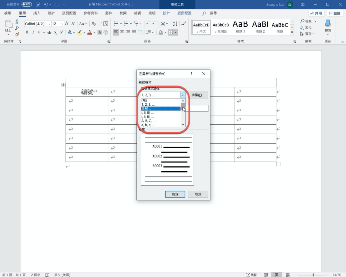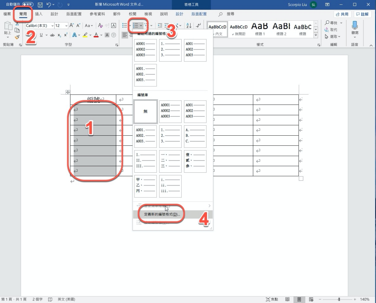 Word 教學 - 如何在表格裡自訂「連續編號」