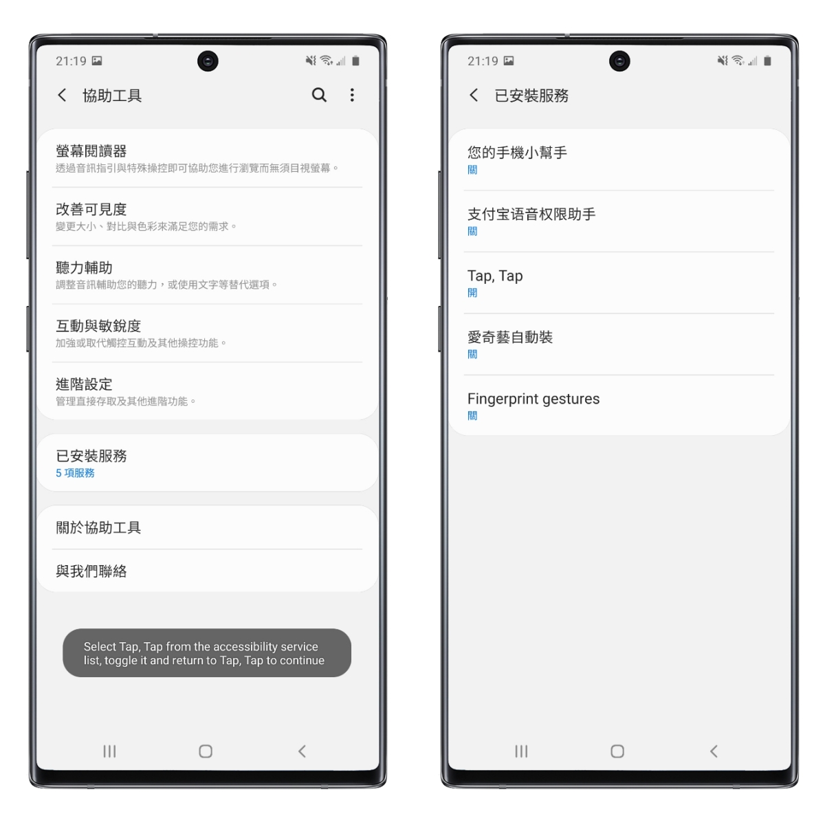 進入「已安裝服務」,找到 Tap, Tap 將他打開,然後回到 APP 去。