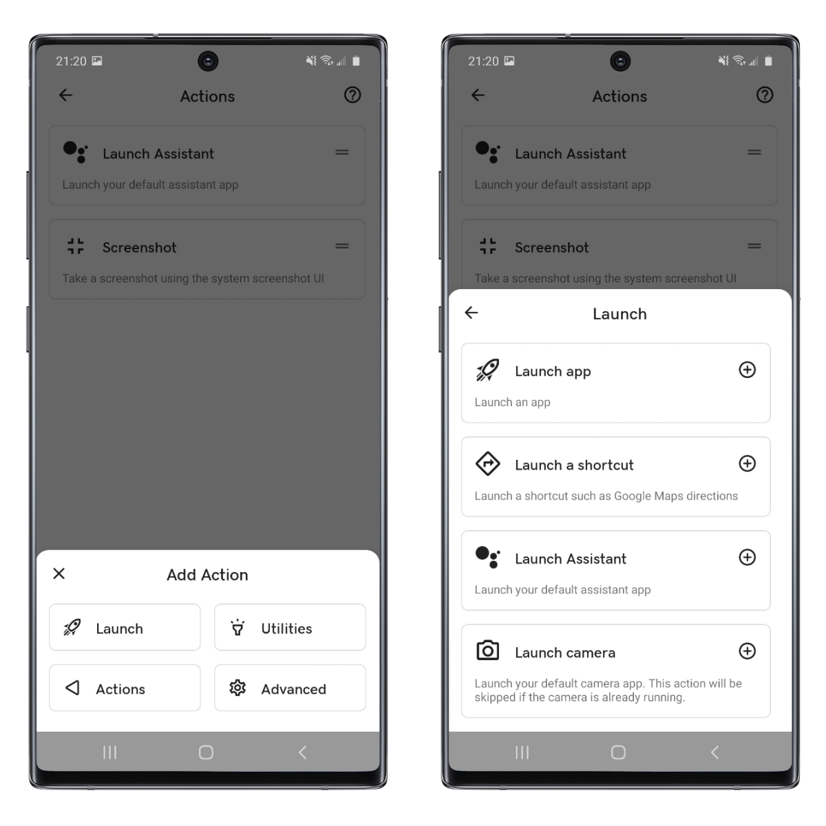 首先,要設定敲二下後做什麼,就是在 Actions 裡,預設是執行語音助理,他的排序是這樣,如果當我敲二下,第一個已經成功了,那麼就會幫你執行第二個。