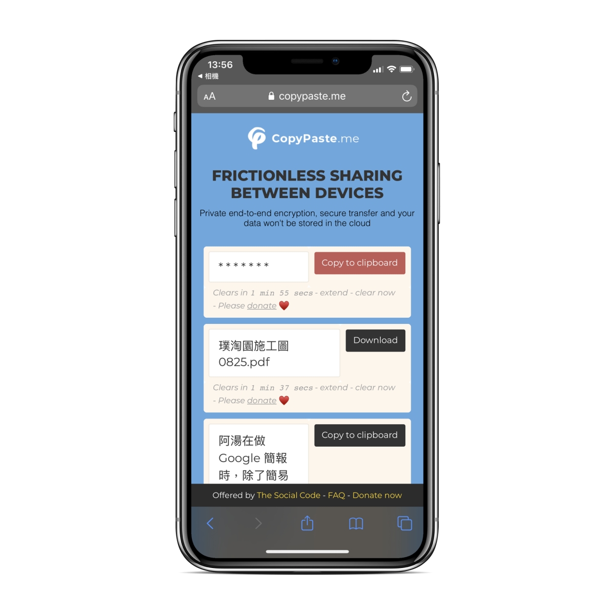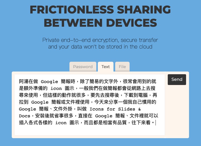 以 iPhone 來說有便利的 AirDrop,而 Android 新的也有 Nearby Share 功能,不過這二種主要是針對給「鄰近」的人傳送內容或檔案等,今天要分享的 CopyPaste 可以傳送密碼、文字內容或檔案,採用加密的點對點傳輸,內容不會傳送到第三方(當然是這樣講),阿湯還是建議傳送非隱私內容使用為佳,不過這個最大的好處就是不分系統,不需要設備在附近,傳給遠方的朋友也沒有問題。