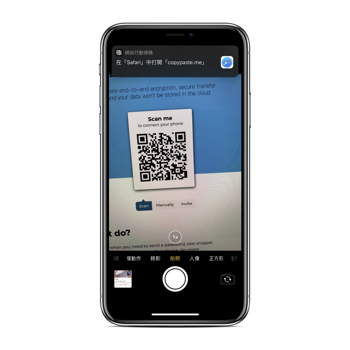 首先進入網站,用電腦或手機都可以,如果你是想傳送到手機上,就直接掃描上面的 QR Code,如果朋友在遠方,也可以直接給他 QR Code 就好。