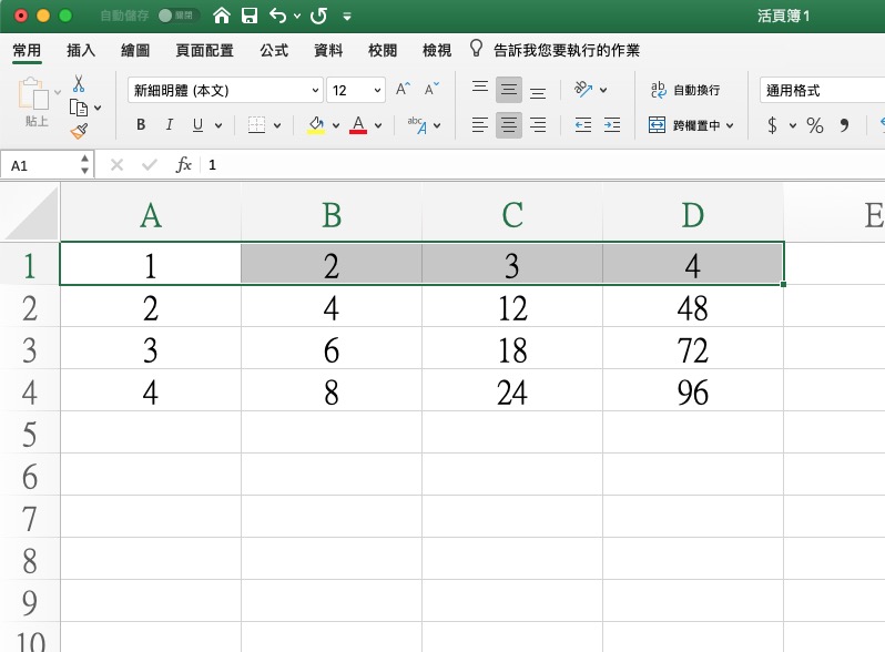 水平陣列一般在 Excel 裡要表示的話,會是用逗號隔開,像是 {1,2,3,4}。