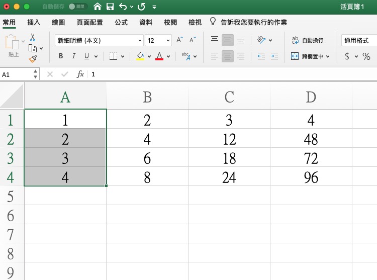 而像 A1:A4 這就叫垂直陣列,也是一維陣列,不過如果是 A1:D1 再和 A1:A4 對比起來就可以形成二維陣列。