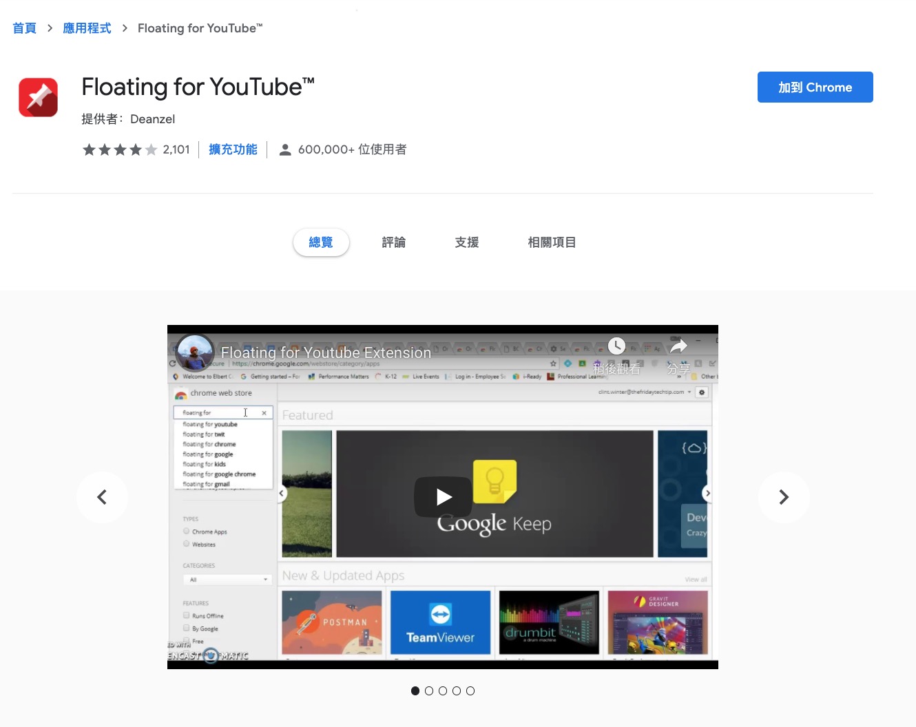 Chrome 外掛「Floating for YouTube™」:請點我進入安裝