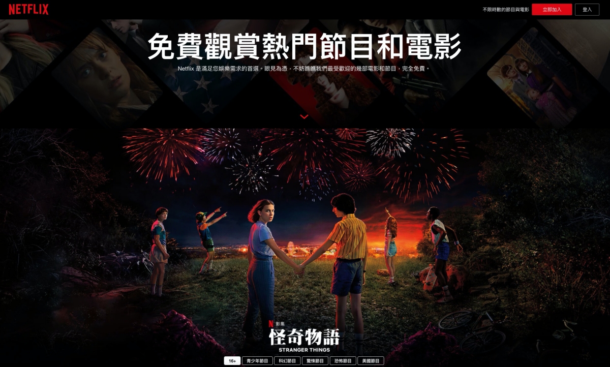 免費看網址:https://www.netflix.com/tw/watch-free進入上述網址就可以直接收看,像是阿湯看過還算不錯的怪奇物語,雖然只提供一集,我想這就是要誘惑你繼續看下去的方式吧。