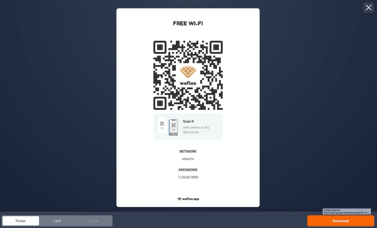 網站:https://waflee.app/進入網站後直接輸入你的網路 SSID 及連線密碼,就可以產生。