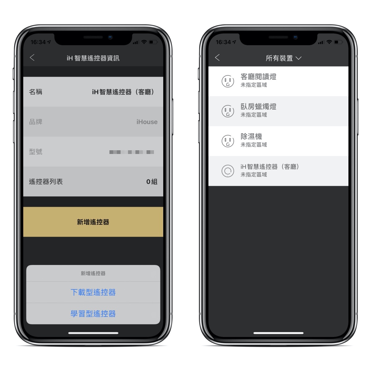 像我將 iH 智慧插座及 iH 智慧遙控器都加入完成後,就可以開始設定要控制的家庭有哪些,當然最基本的就是冷氣跟電視,一定要加入的。