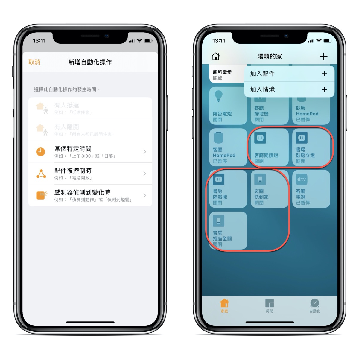 第二種情境就很簡單,就像我前面的首圖一樣,只要將想打開及關閉的設備都調整好後,直接就可以一鍵搞定,或是透過 Siri/Google 用嘴巴來搞定。