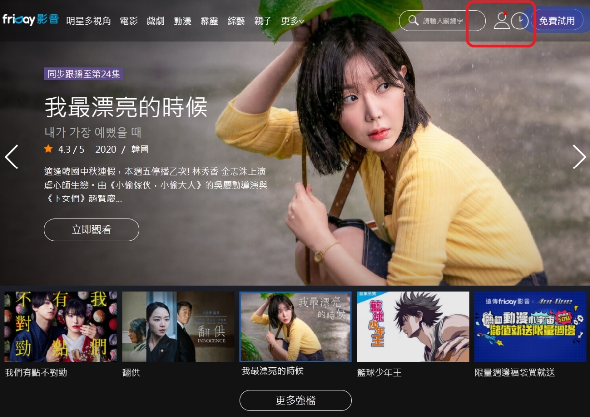 friDay 影音網站:https://video.friday.tw/阿湯這邊用電腦網頁版做兌換示範給大家看,不論你是否是新註冊或原本就是會員都可以換,登入後先點擊右上角的小人進入會員專區。