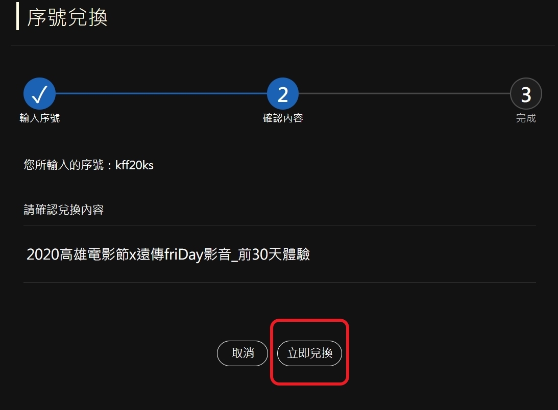這樣就完成兌換了,到 11/30 前都可以進行兌換,其實最近在 friDay 影音上有蠻多不錯的劇或節目,算蠻值得一用的。