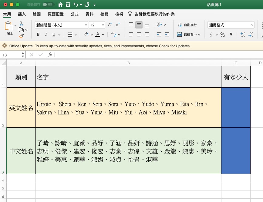又到了回覆網友問題的時候了,問題是這樣的,他們在記錄姓名時,是在同一個欄位裡用符號將姓名隔開,比如 A 班是「王、陳、劉」這樣,B 班是「李、林、許」,以此類推,但因為這樣記錄的關係,他在想要怎麼直接統計欄位裡的人數一共有多少個,如果欄位不多大概手指點一點可以算完,但如果人數很多大概就 GG 了,今天就來用函數教大家怎麼計算在同一個欄位裡的姓名人數有多少,當然,這招學會後用在其他計算也是可以用的。