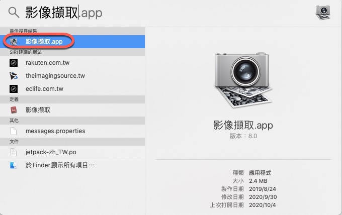 首先可以在 macOS 裡搜尋「影像擷取」APP,然後執行。