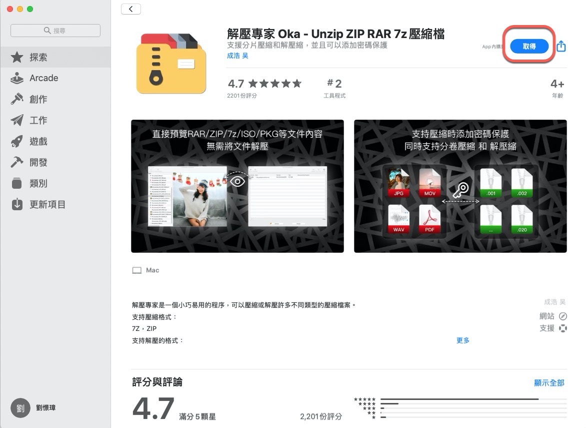 首先可以在 Mac App Store 裡搜尋 Oka 後按下取得進行下載,軟體下載時是免費的,想使用更多功能才會需要用到內購 VIP 權限,今天就來分享一下免費取得終生 VIP 權限。