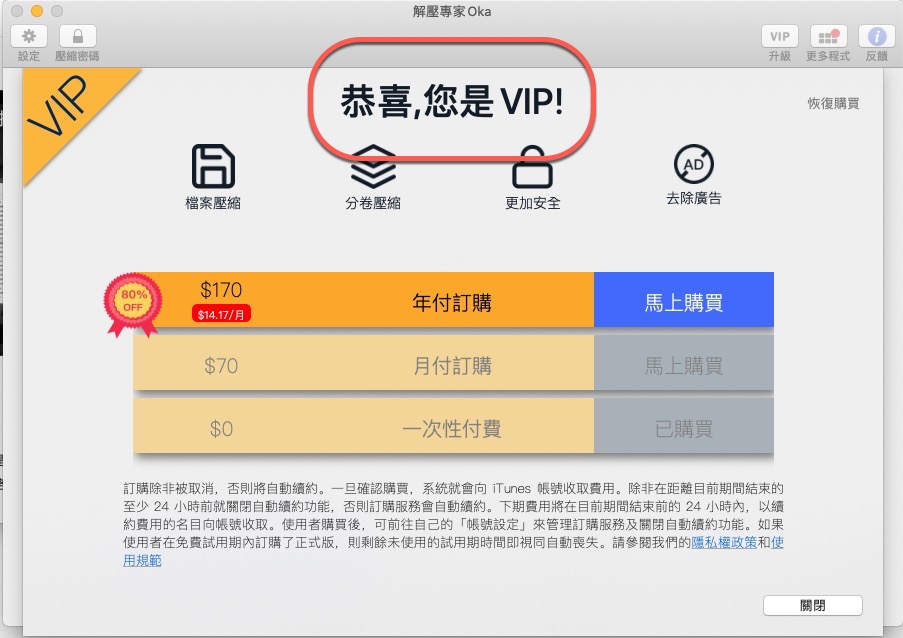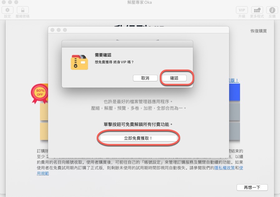 如何免費取得 OKA 壓縮軟體終生 VIP 權限: