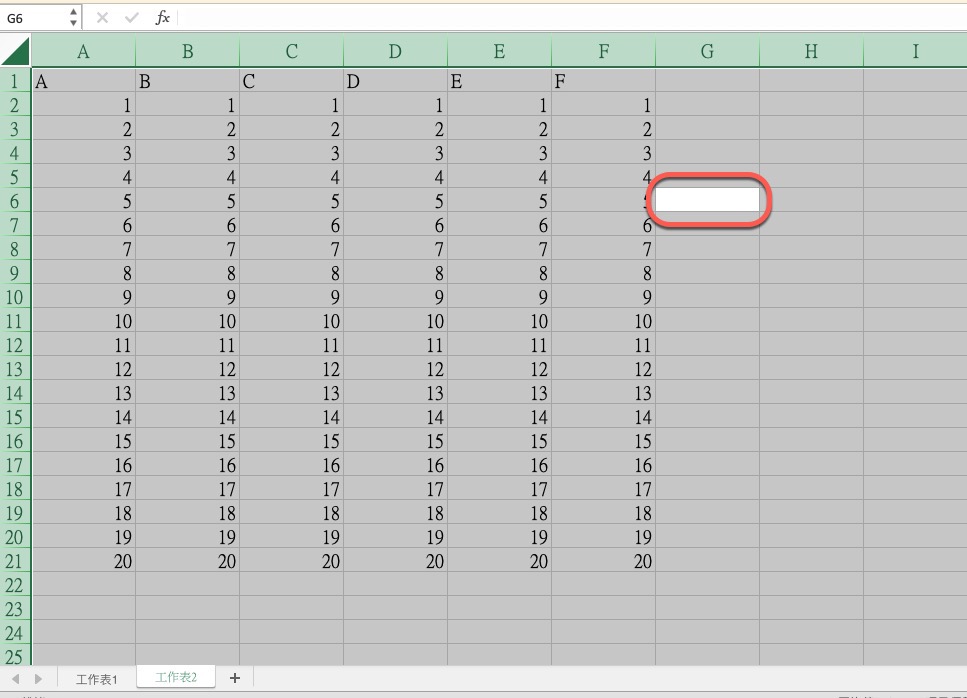 首先第一個是大家都會的,Ctrl + A 全選內容,只要你在沒資料的任一欄位按一下後,再按下 Ctrl + A 就會選取整個工作表。