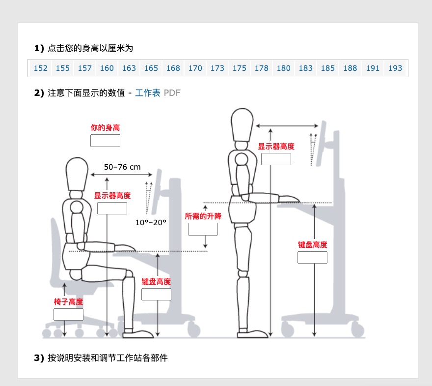 然後就會顯示各個數據讓你清楚的知道應該要調整多高、距離多遠,坐或站著都有數據可以對比,如果你最近正想換書桌的可以試看看。