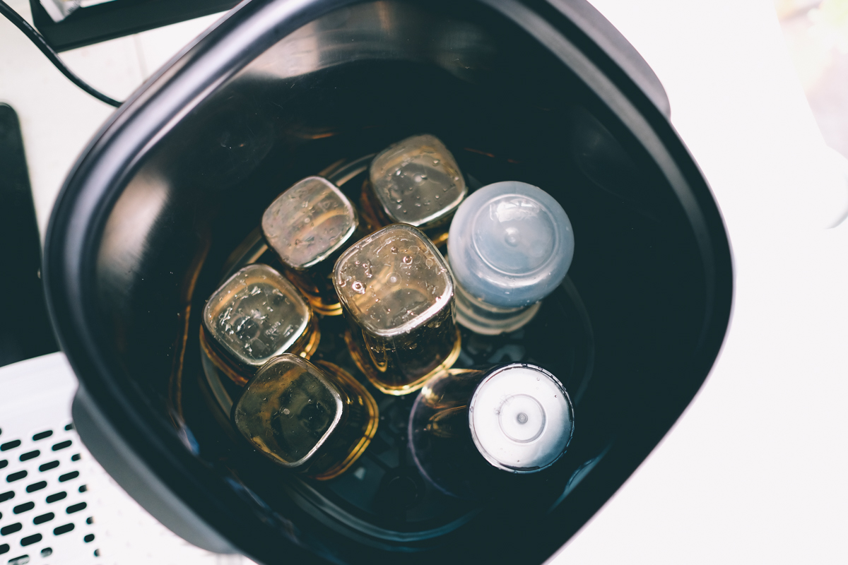 每次倒入一個滿水量杯大約可以蒸 7 分鐘左右(80ml),也差不多就是我們一般消毒的時間,或者像加熱副食品,其實用傳統電鍋也差不多會是用 7-8 分鐘。