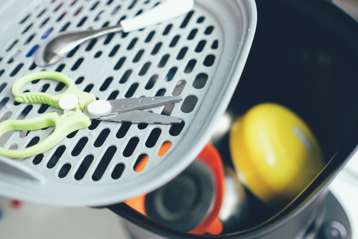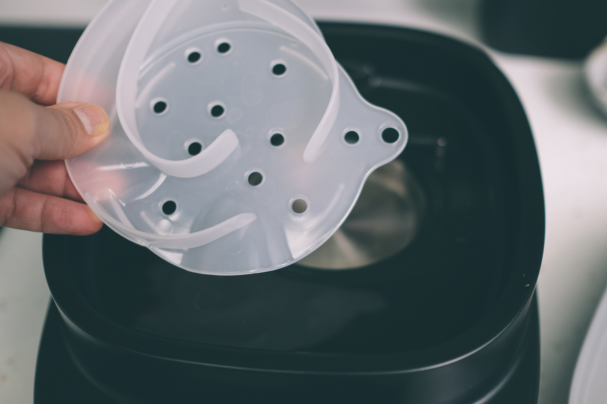 Combi GEN 3 消毒溫食多用鍋可以分拆為三個部份,由左至右分別是透明上蓋、奶瓶置放桶 + 溫食配件盤跟座體主機本身,使用時可以依需要的模式組裝,收納時也不用東放西放,全部裝在一起就好,收納方便不用再擔心配件消失。