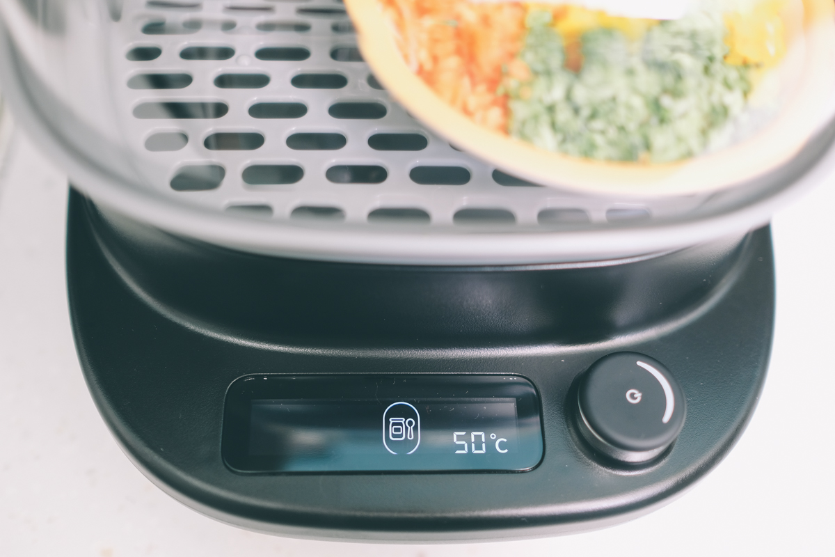 以往在使用蒸氣消毒鍋時,因為會有蒸氣,一般也不太會直接放在電器櫃裡使用,都會佔用流理台的位置,但又只有要消毒烘乾時才拿出來用,變成要一直收收拿拿,但 Combi GEN 3 消毒溫食多用鍋由於三合一多了「溫食模式」,平常做料理時也可以用到,其實就直接一直放在流理台上就沒有什麼差異了,因為像我們家本來就吃的比較簡單,大多時候也都會用清蒸的,像顆老大因為健身最常吃的就是雞胸肉,湯包吃的就以燉飯居多,有時我會一次做比較大份量,再分放 2~3 天的盒子裡,這樣每次要吃飯只要拿出來用溫食模式就可以了,真的相當方便。