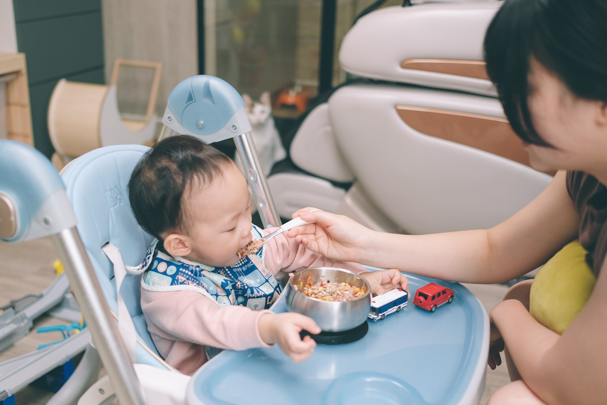 再來就讓湯大廚來展現一下廚藝吧,很多家庭都是媽媽努力準備小朋友的吃的,但在我們家其實是一半一半,我跟顆老大善長做的菜色大不同,像我就是偏中式料理,她是偏西式料理,就來教大家做個一歲多已經有一些牙齒的話,可以做的燉飯。